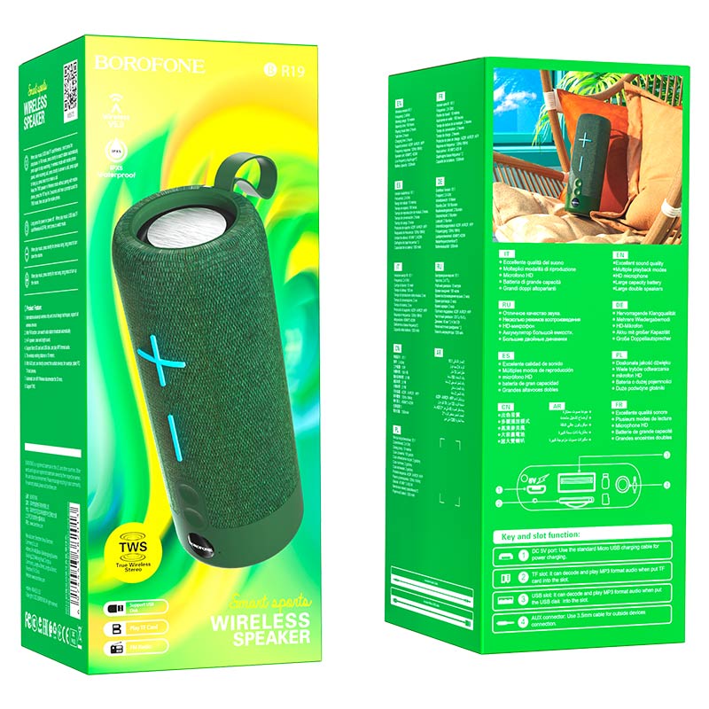 BOROFONE BR19 Euphony, портативная колонка, BT v5.1, батарея 1200mAh для 2 часов использования, поддержка BT, FM, TF, USB, TWS режимов воспроизведения