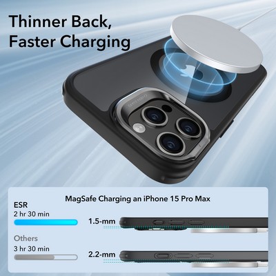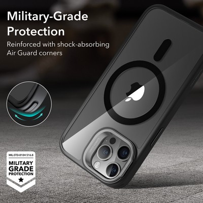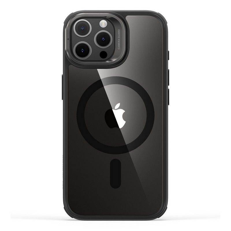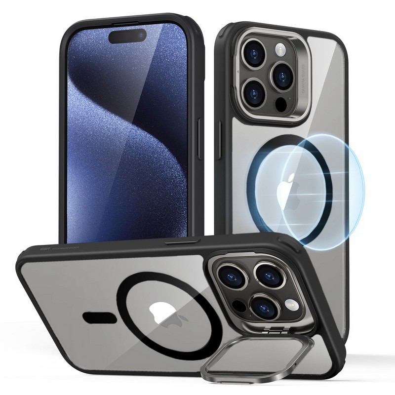 Чехол премиум качества с MagSafe и металлической подставкой (доп. защита камер) для телефона iPhone 15 Pro Max, ESR, ПРОЗРАЧНЫЙ С ЧЕРНЫМИ ГРАНЯМИ