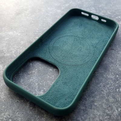 Чехол с магсейв на Айфон 15 Про, Silicone Case, темно-зеленый