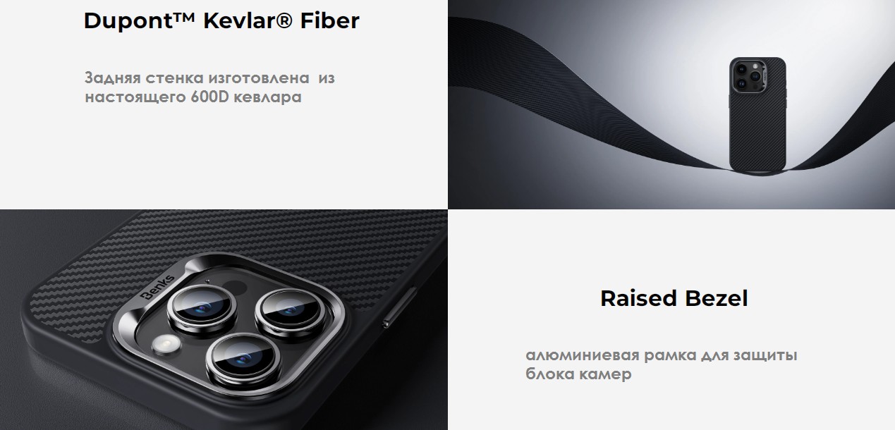 Чехол бренда Benks - это высококачественный продукт изготовленный по самым высоким стандартам. Чехлы серии Air изготовлены полностью из кевлара за исключением стильного металлического кольца вокруг камеры.