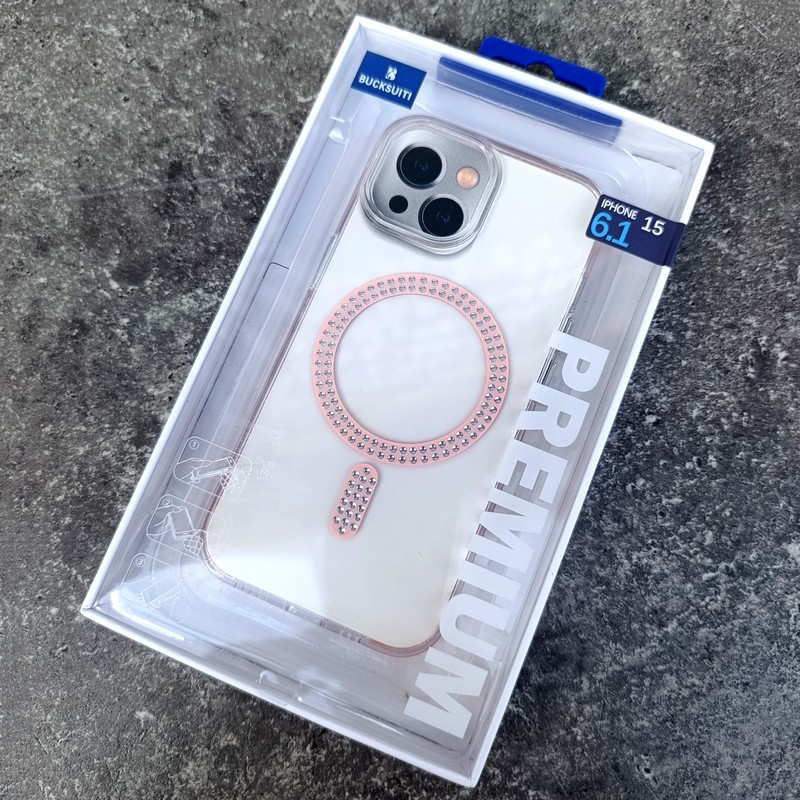 Для iPhone 15 чехол BuckSuiti со стразами прозрачно-розовый