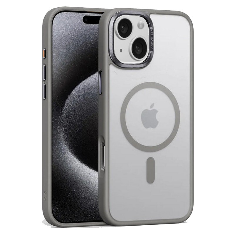 Матовый чехол из поликарбоната с силиконовыми гранями и металлической рамкой для Айфон 15.