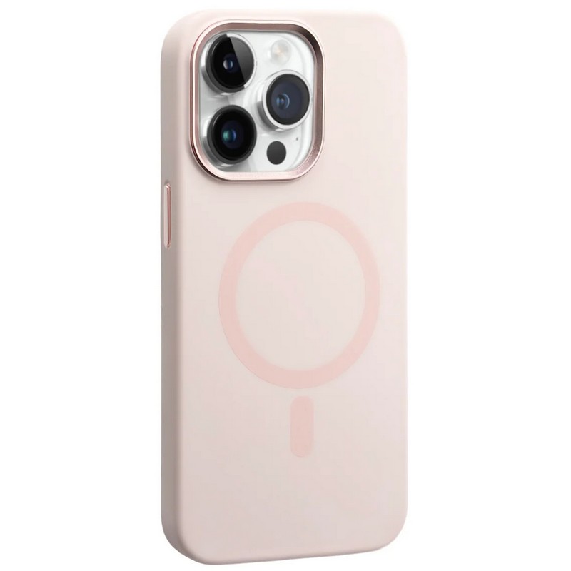 Чехол MagSafe BuckSuiti с металлической рамкой для защиты блока камер, цвет - розовый.