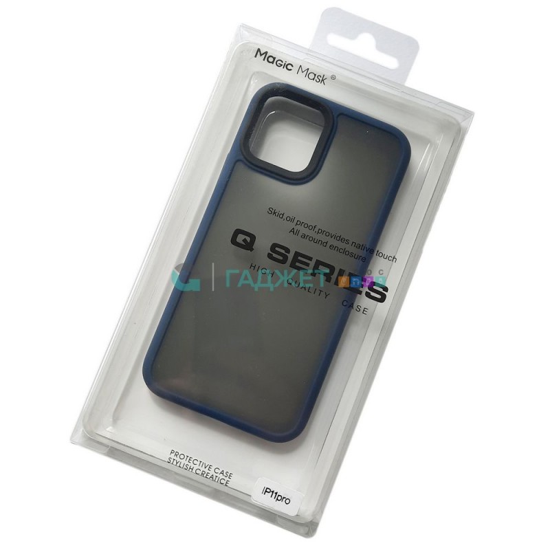 Матовый тонированный чехол для Apple iPhone 11 Pro с силиконовыми гранями Q-Series, синий