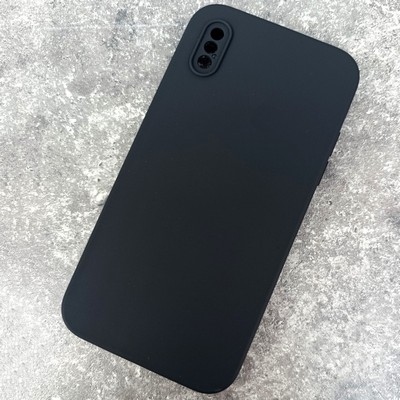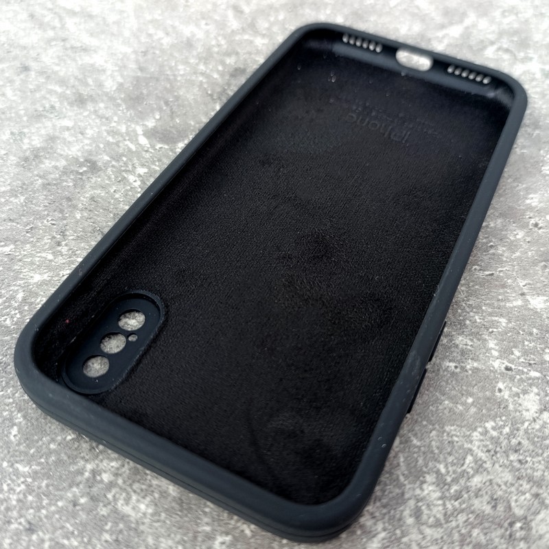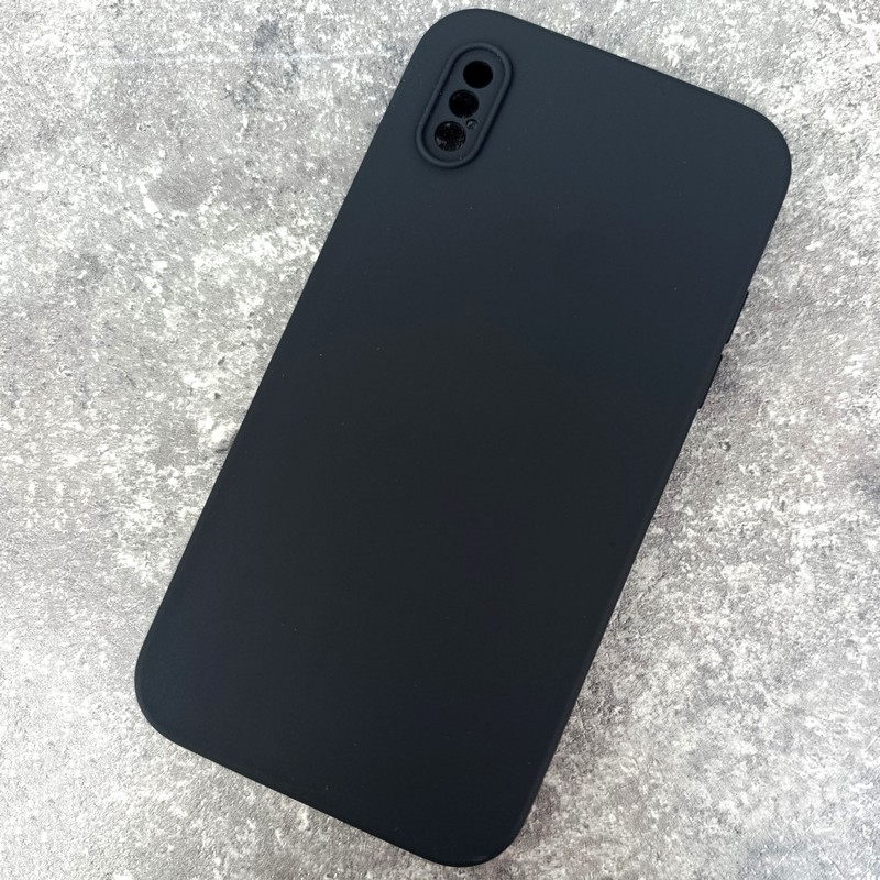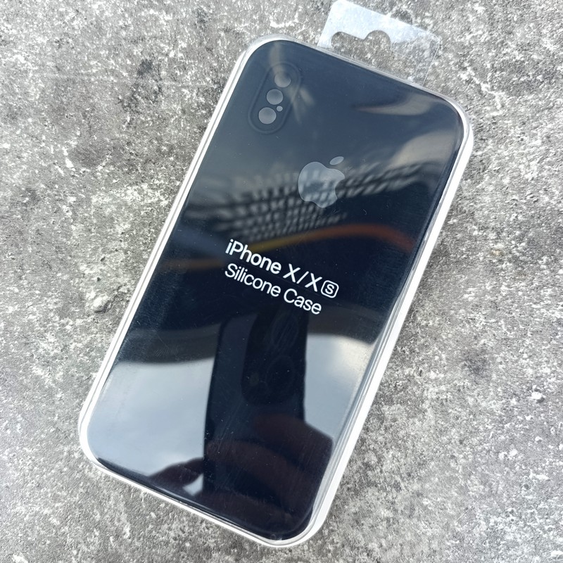 Чехол на iPhone X / XS, Silicone Case с логотипом и прямыми гранями, черный