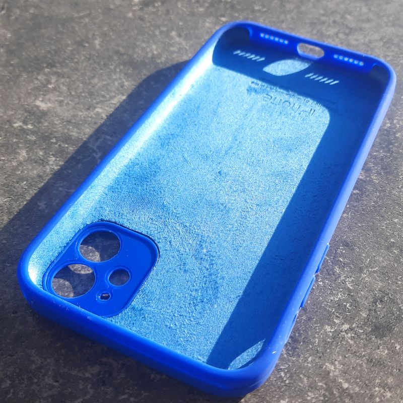 Айфон 11 чехол Silicone Case, с квадратными гранями, ярко синий