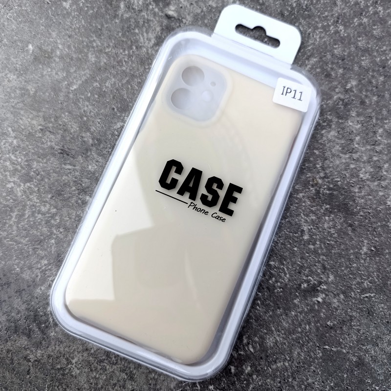 для iPhone 11 чехол, силиконовый с микрофиброй внутри и матовыми прозрачными вставками, бежевый