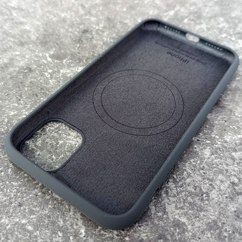 для iPhone 11 чехол, с поддержкой MagSafe, силиконовый с жестким основанием внутри и микрофиброй, серый
