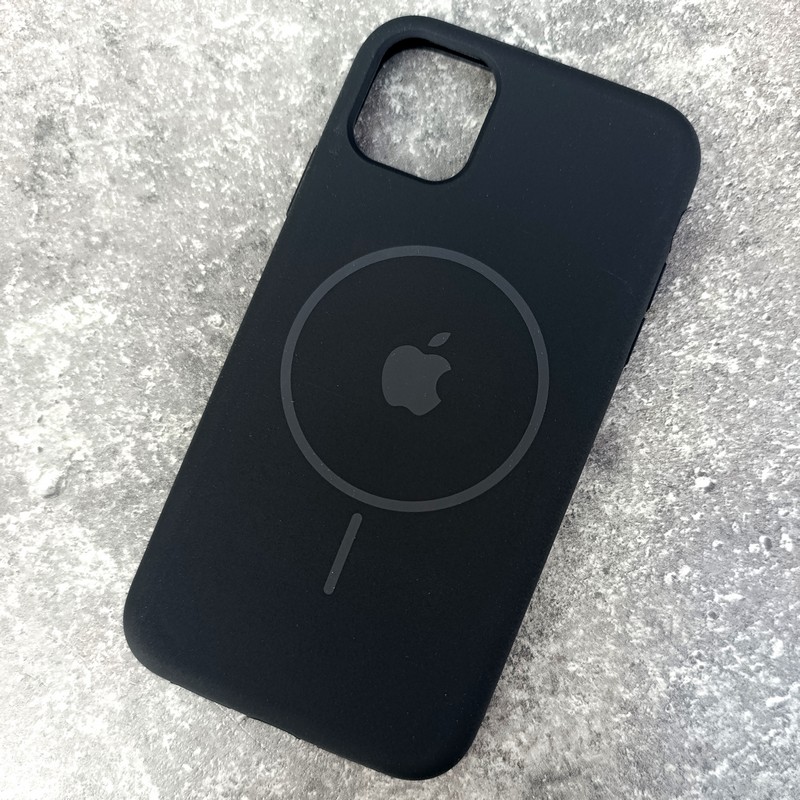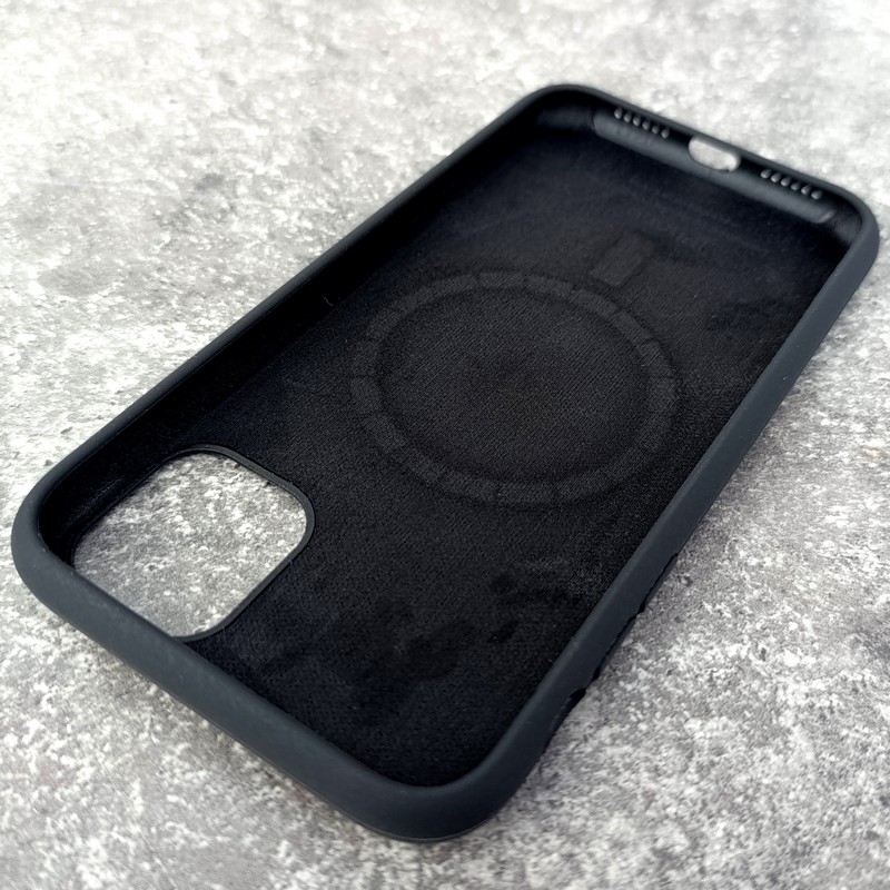 для iPhone 11 чехол, с поддержкой MagSafe, силиконовый с жестким основанием внутри и микрофиброй, черный