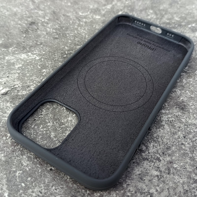 для iPhone 12 чехол, с поддержкой MagSafe, силиконовый с жестким основанием внутри и микрофиброй, серый