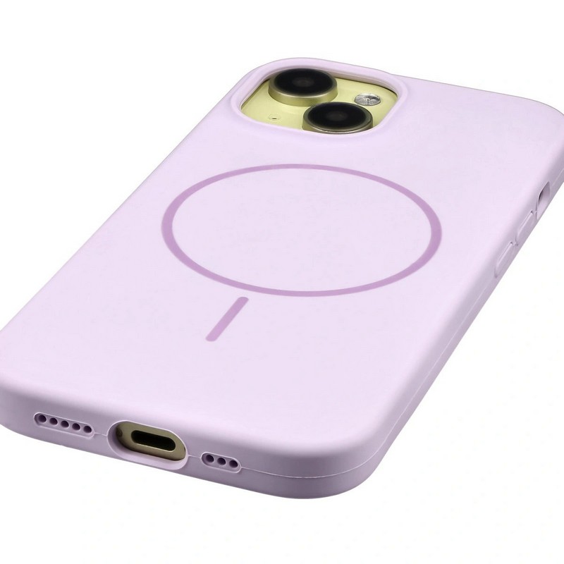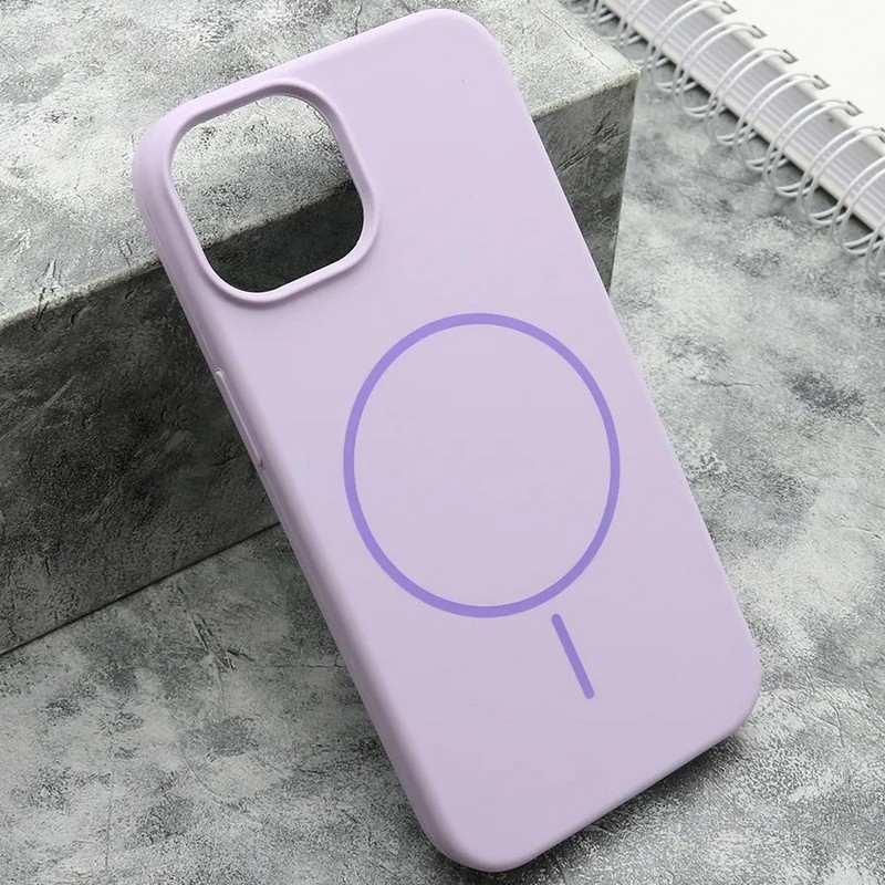 для iPhone 12 чехол, с поддержкой MagSafe, силиконовый с жестким основанием внутри и микрофиброй, фиолетовый
