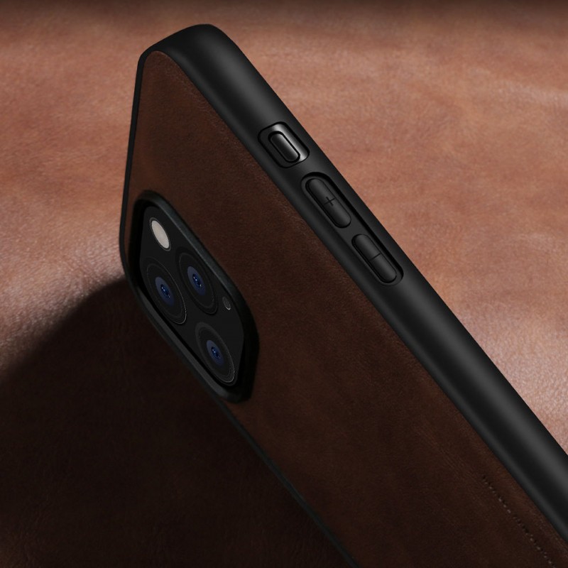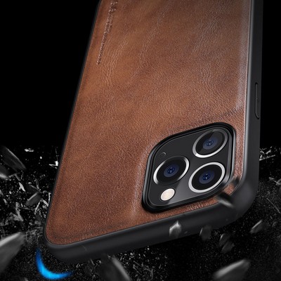 Комбинированный чехол-накладка с силиконовыми краями и стильной фактурной поверхностью из эко-кожи для телефона Apple iPhone 12 Pro Max 6.7