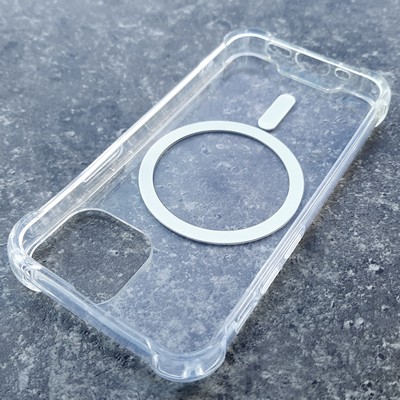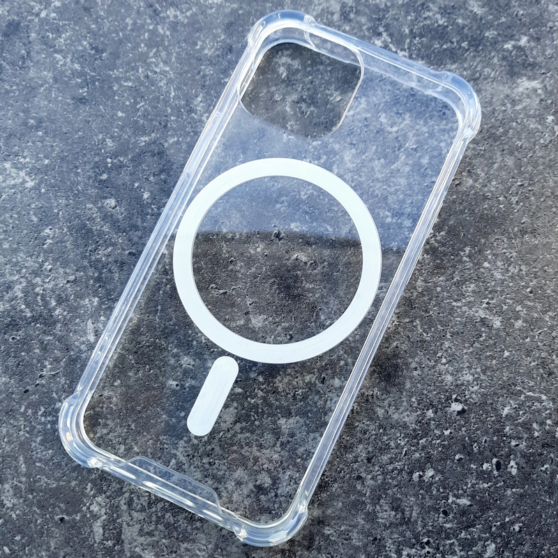 Чехол из твердого поликарбоната с мягкими силиконовыми бортами и с армированными углами-бортиками, для телефона iPhone 13 Mini, с поддержкой MagSafe прозрачный