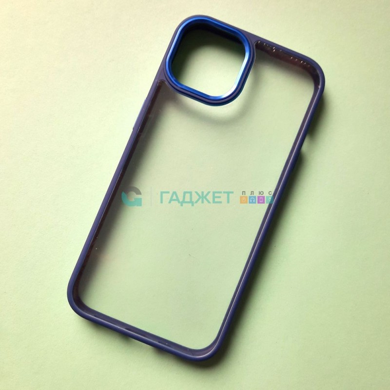 Прозрачный чехол для Apple iPhone 13 с силиконовыми гранями, синий