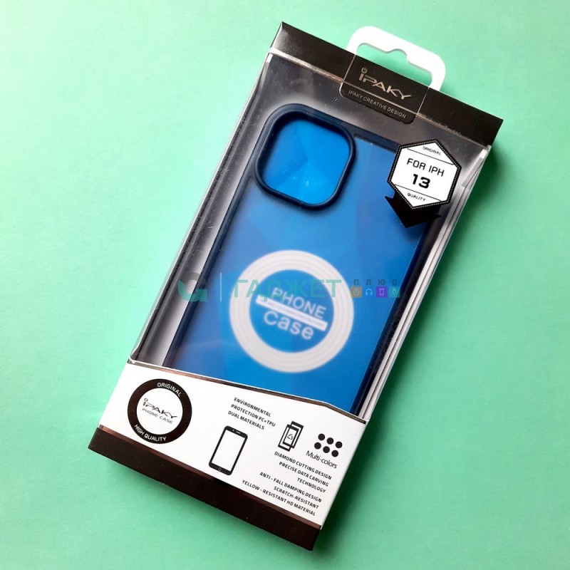 Матовый белый чехол для Apple iPhone 13 с синими силиконовыми гранями iPaky Shadow Sand
