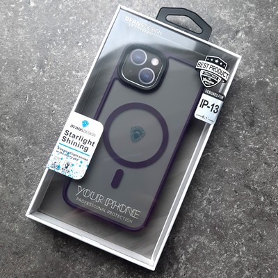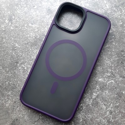 Чехол для Айфон 13 премиум-класса DFans, с поддержкой MagSafe, пластиковый матовый с фиолетовыми силиконовыми гранями.