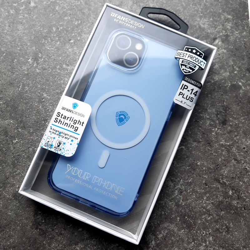 Чехол премиум-класса DFans, с поддержкой MagSafe, пластиковый с силиконовыми гранями голубой матовый.