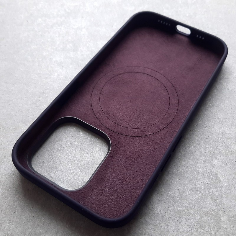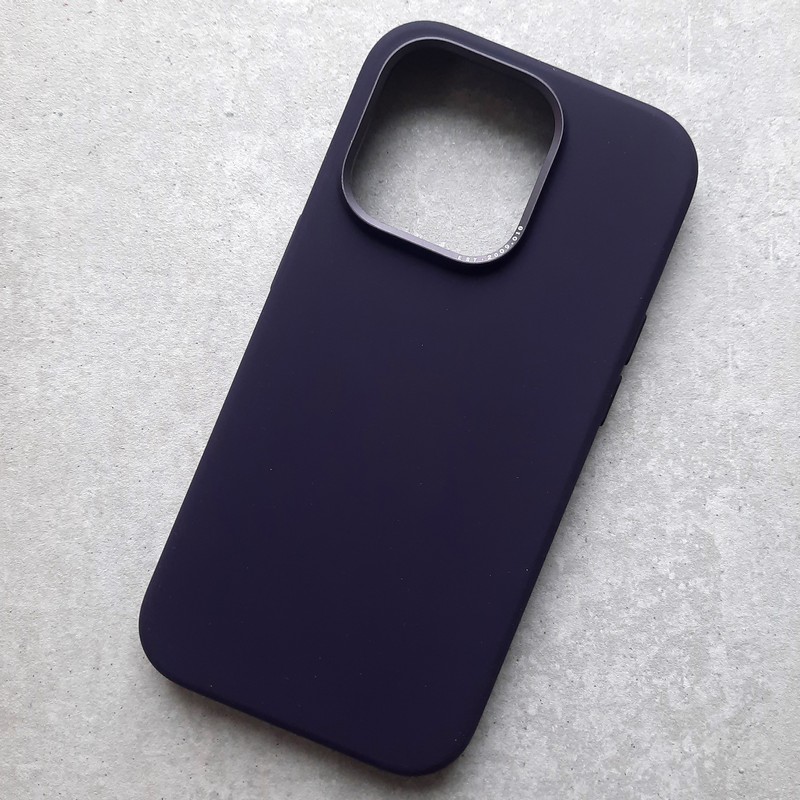 Чехол премиум класса для Айфон 14 про, с поддержкой MagSafe и металлической защитой блока камер Silicone Case BuckSuiti, фиолетово-черный.
