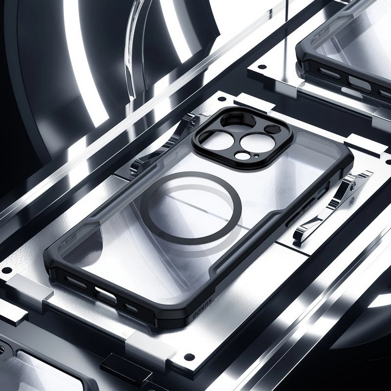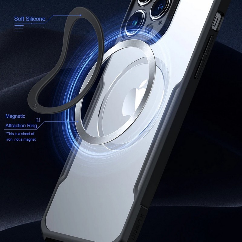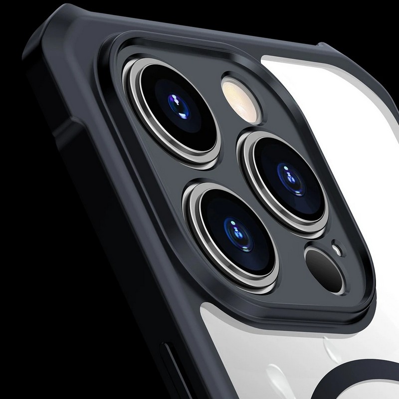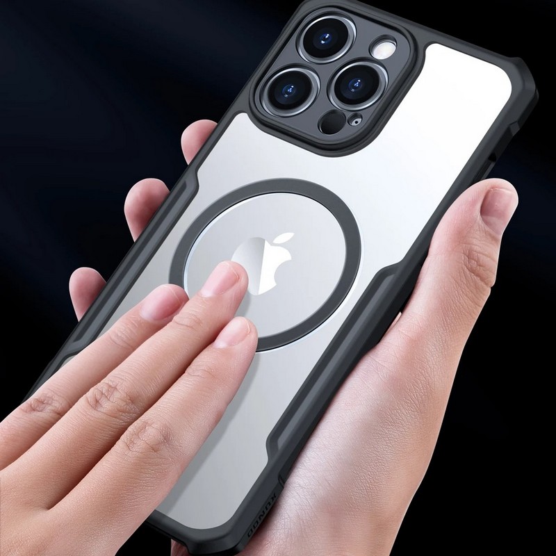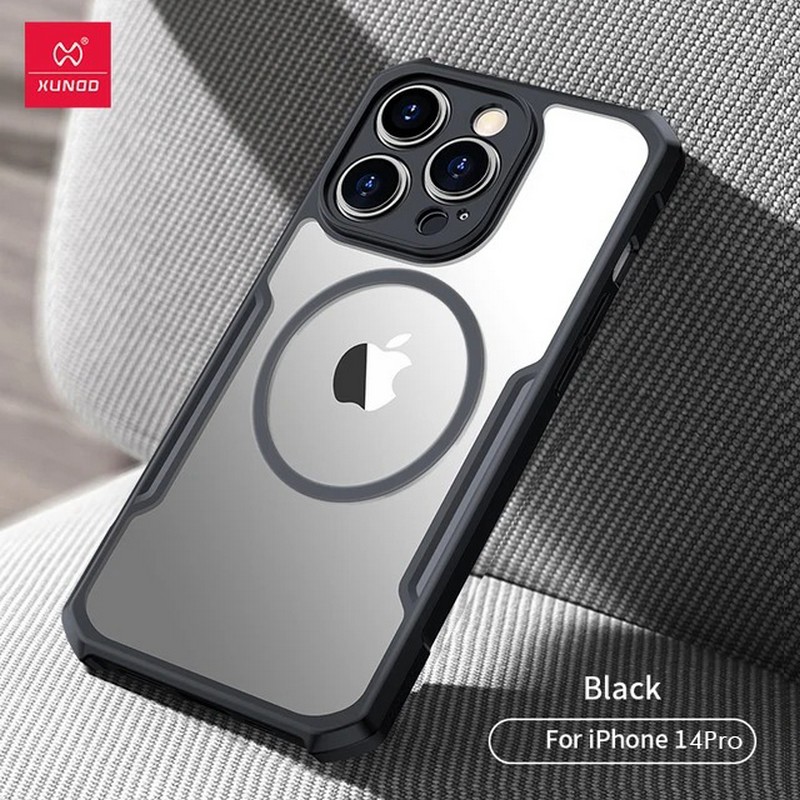 Комбинированный чехол (PC + TPU) для телефона iPhone 14 Pro с поддержкой MagSafe, прозрачный с черным. Бренд XUNDD.