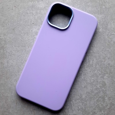 Чехол премиум класса для Айфон 14, с поддержкой MagSafe и металлической защитой блока камер Silicone Case BuckSuiti, сирень.
