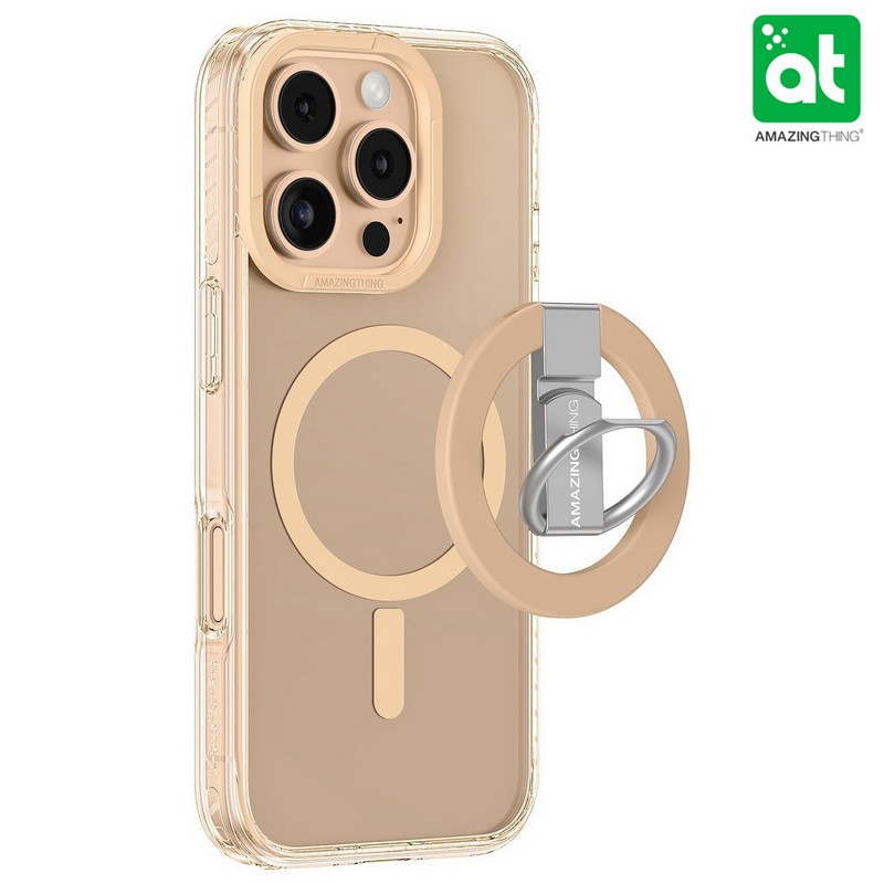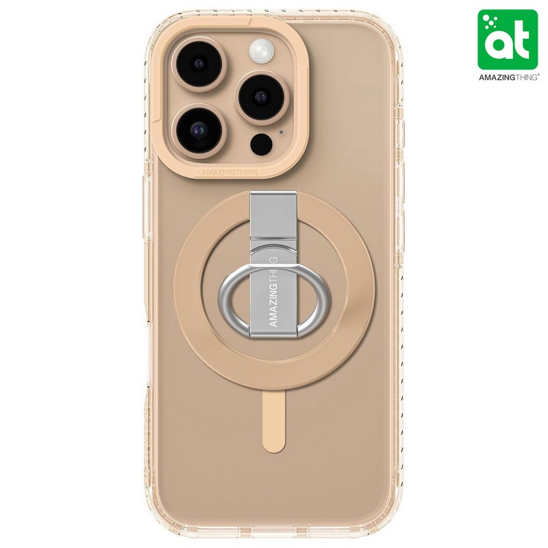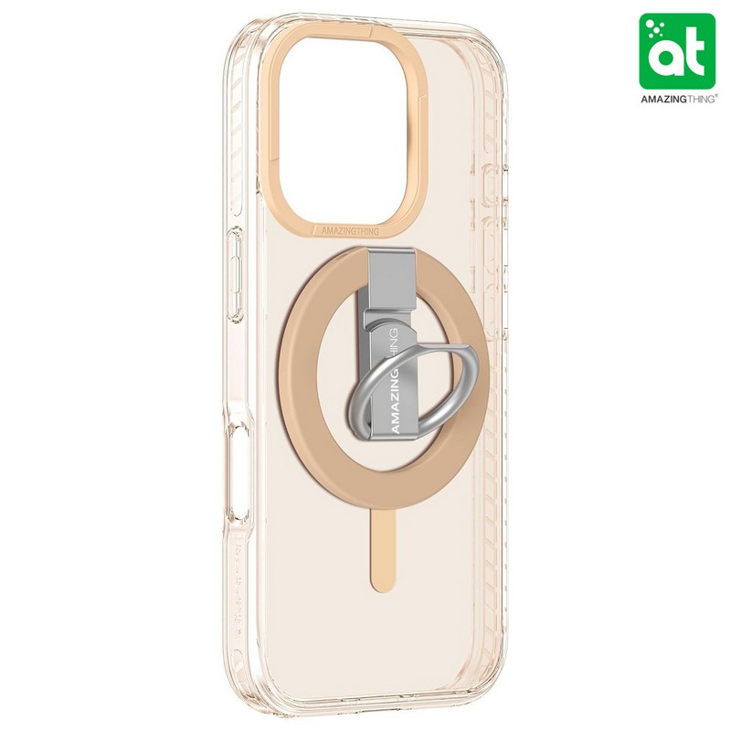 Для iPhone 16 Pro Max чехол с держателем AMAZINGThing Titan Grip Set Pink Sand (золотой)