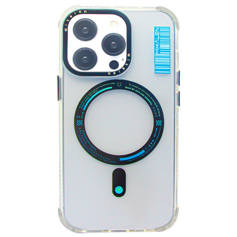 Для iPhone 16 Pro Max чехол Mikalen с MagSafe штрихкод голубой