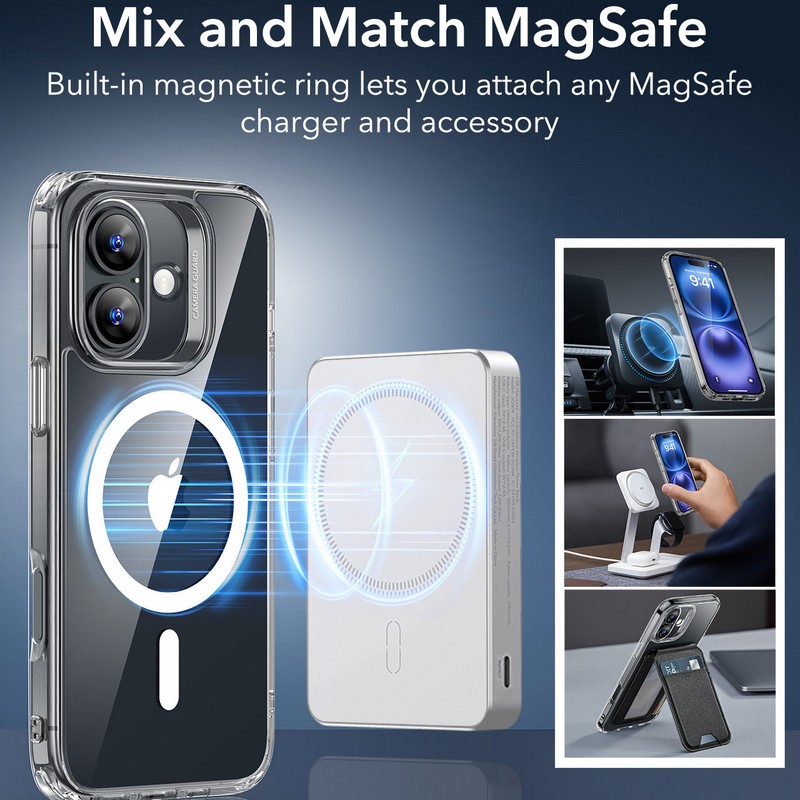 Встроенное магнитное кольцо в чехле позволяет подключать зарядные устройства, беспроводные внешние аккумуляторы, кошельки, подставки и многое другое. Оптимизируйте свои повседневные вещи с помощью удобной системы «все в одном».