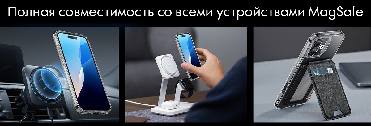 - Полная совместимость с MagSafe для быстрой и простой беспроводной зарядки