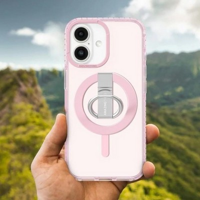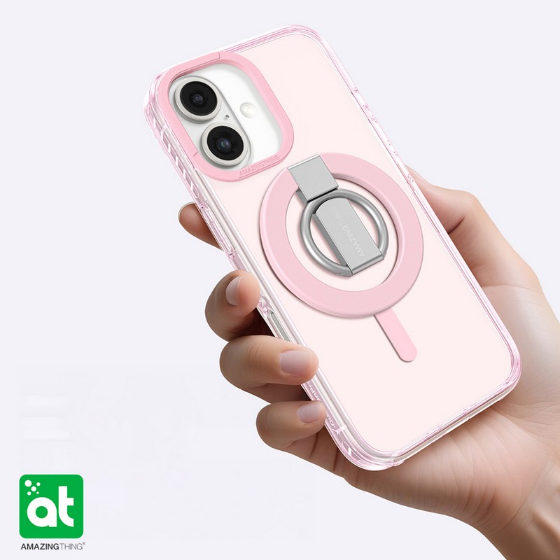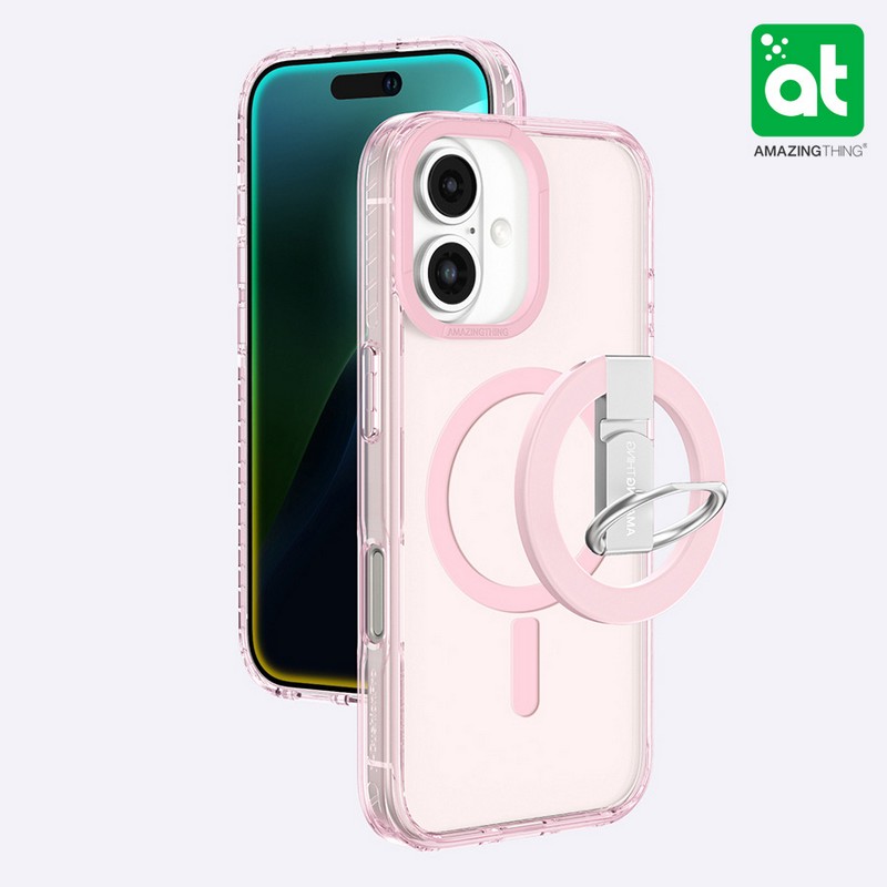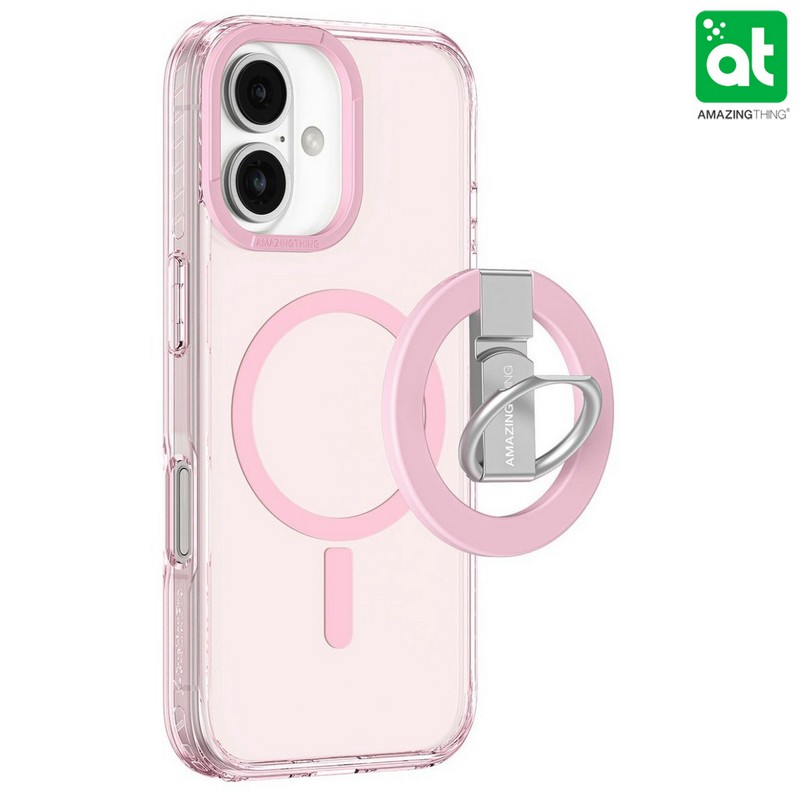 Для iPhone 16 чехол с держателем AMAZINGThing Titan Grip Set Pink (розовый)