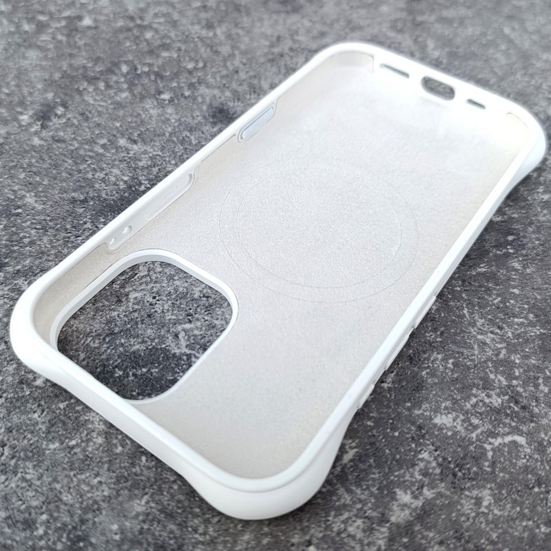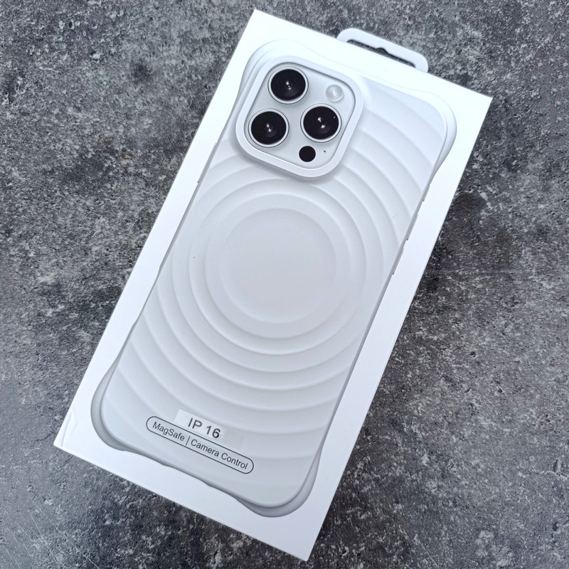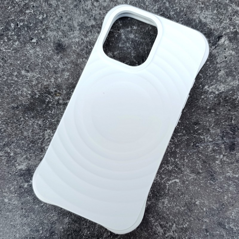Чехол MagSafe BuckSuiti с усиленными углами и кнопкой контроля камеры, модель - волна, цвет - белый.