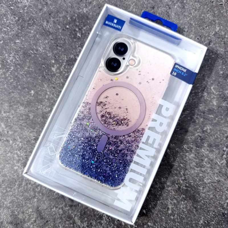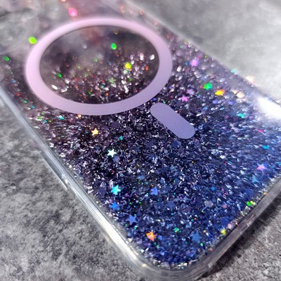 Чехол с блесткаи BuckSuiti из поликарбоната и силикона (боковые грани), прозрачный с фиолетовым .