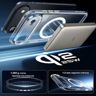 Мощные встроенные магниты с удерживающей силой 1 500 g обеспечивают более сильное примагничивание зарядных устройств и аксессуаров типа MagSafe, чем телефон без чехла или оригинальные чехлы MagSafe.
