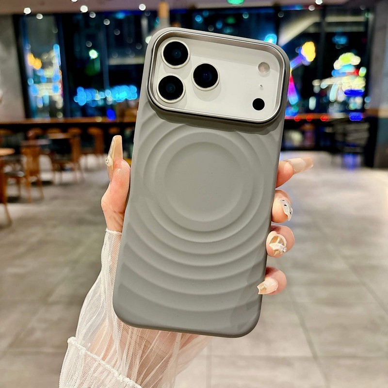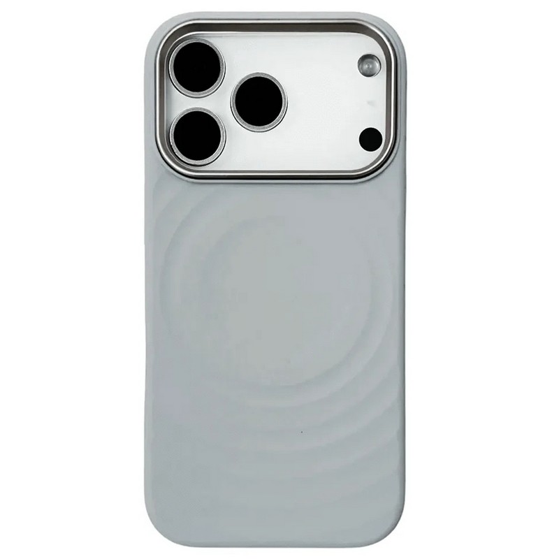Чехол MagSafe BuckSuiti с металлической рамкой для защиты блока камер, модель - волна, цвет - светло-серый.