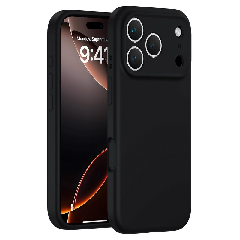 для iPhone 17 Pro Max плотный силиконовый чехол, с жестким основанием внутри и микрофиброй, черный.