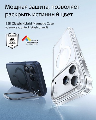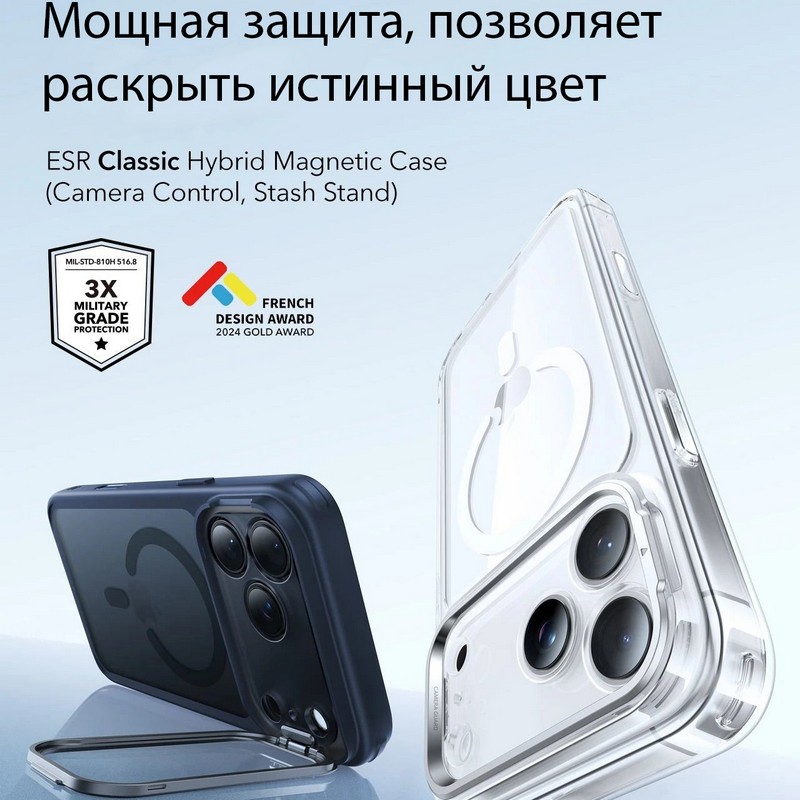 Чехол для iPhone 17 Pro ESR Classic Hybrid Case, Stash Stand, MagSafe, Frosted Blue (тонированный синий)