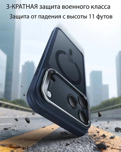 Комбинированный чехол (поликарбонат и грани из TPU) премиум качества с MagSafe и скрытой подставкой для телефона iPhone 17 Pro, ESR, Classic Hybrid Case Stash Stand Frosted Blue (тонированный синий)