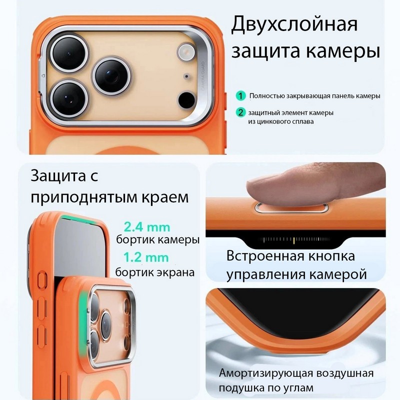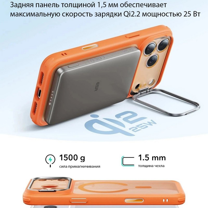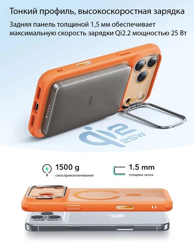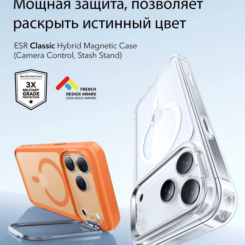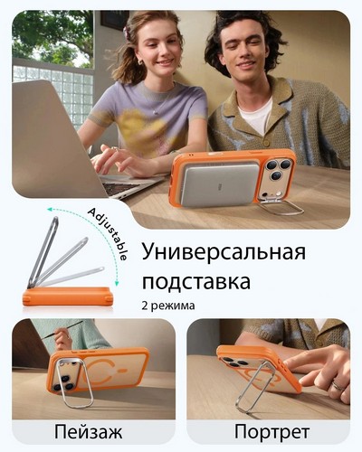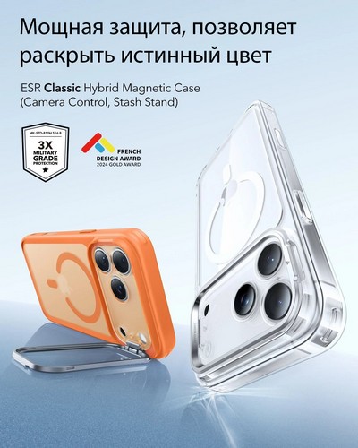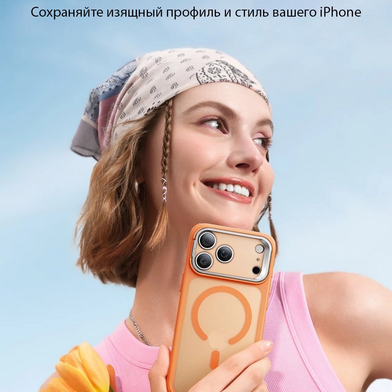 Чехол для iPhone 17 Pro ESR Classic Hybrid Case, Stash Stand, MagSafe, Frosted Orange (тонированный оранжевый)