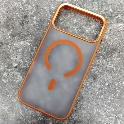 Чехол из поликарбоната с силиконовыми гранями для Apple iPhone 17 Pro матовый оранжевый.