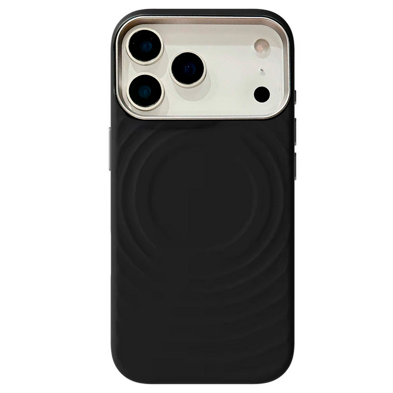Чехол MagSafe BuckSuiti с металлической рамкой для защиты блока камер, модель - волна, цвет - черный.
