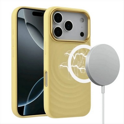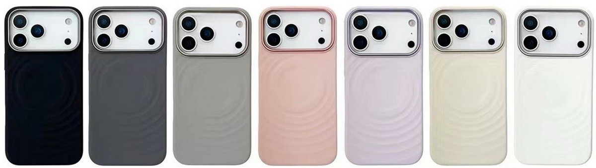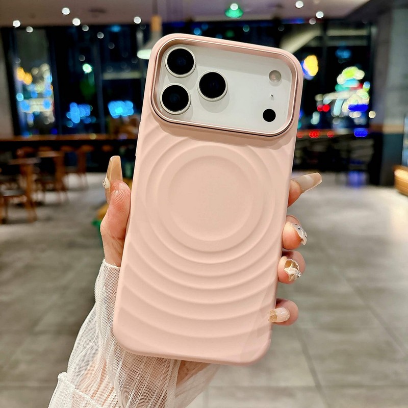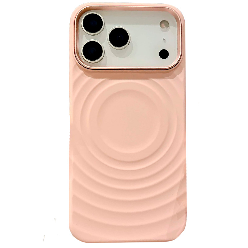 Чехол MagSafe BuckSuiti с металлической рамкой для защиты блока камер, модель - волна, цвет - розовый.