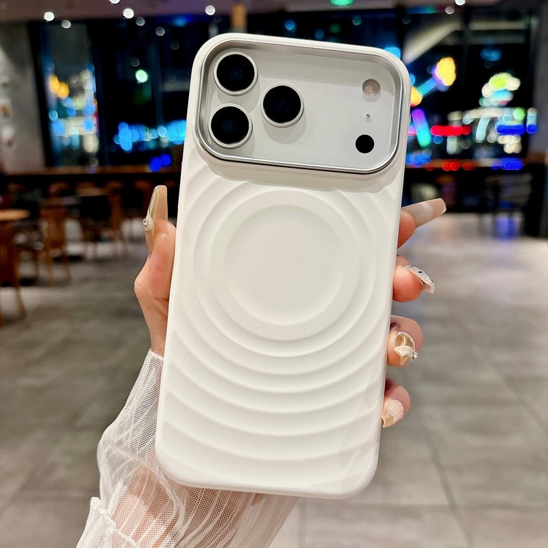 Чехол MagSafe BuckSuiti с металлической рамкой для защиты блока камер, модель - волна, цвет - белый.