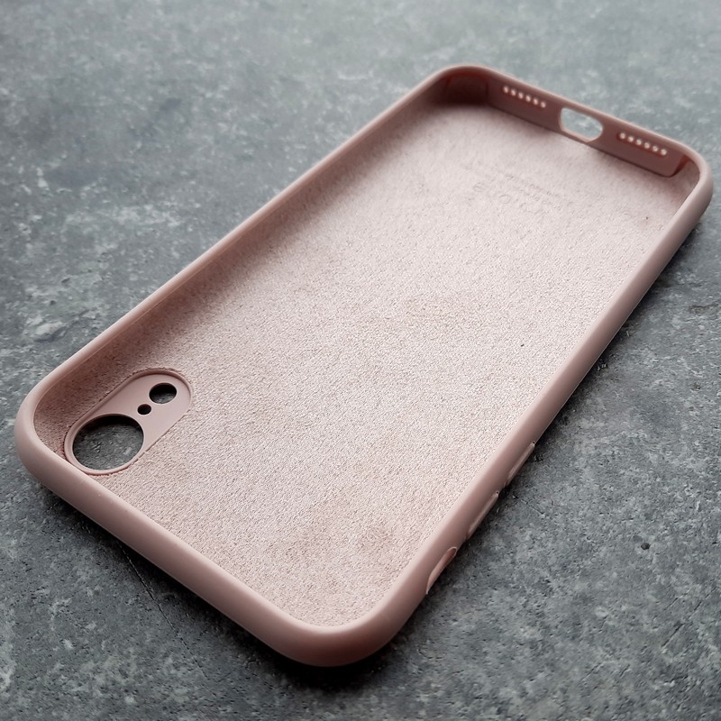 для iPhone XR чехол, силиконовый с жестким основанием внутри и микрофиброй, розовый песок
