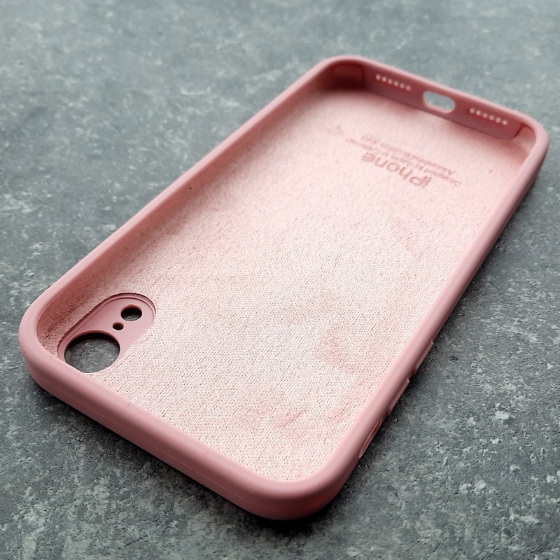 для iPhone XR чехол, силиконовый с жестким основанием внутри и микрофиброй, розовый