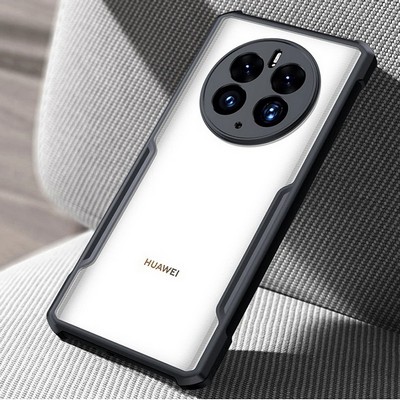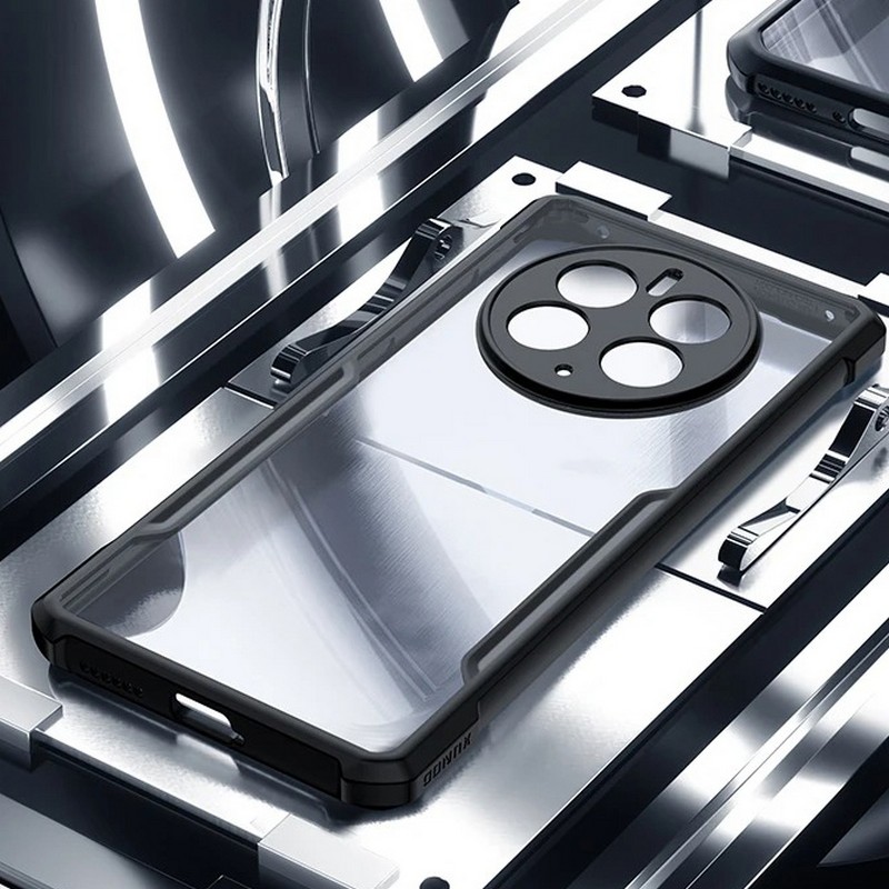 Комбинированный чехол (PC + TPU) для телефона Huawei Mate 50, прозрачный с черными гранями. Бренд XUNDD.