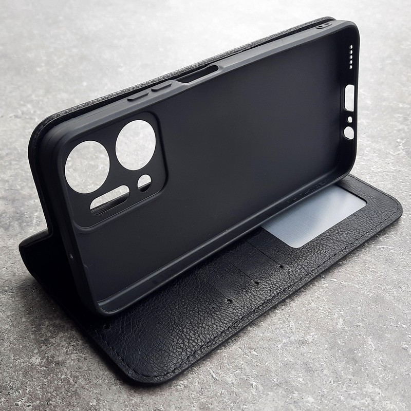 В чехле-книжке есть встроенный слоты под банковские карты, проездной или визитку.