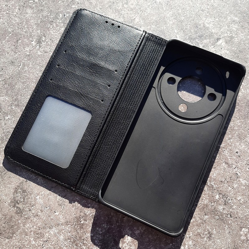 В чехле-книжке есть встроенный слоты под банковские карты, проездной или визитку.