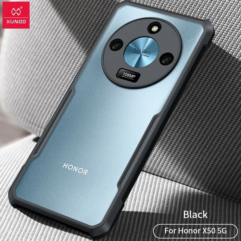 Комбинированный чехол (PC + TPU) для телефона Honor X9B, прозрачный с черными гранями. Бренд XUNDD.