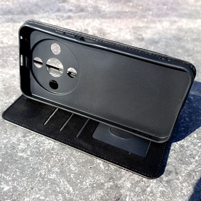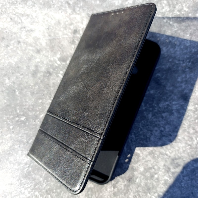 В чехле-книжке есть встроенный слоты под банковские карты, проездной или визитку.