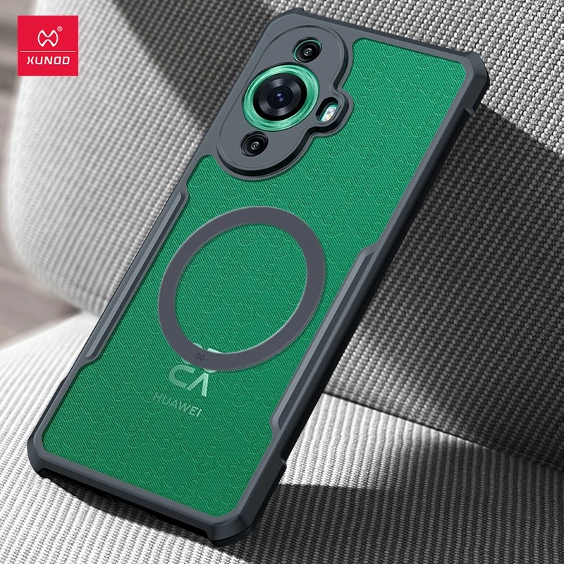 Комбинированный чехол (PC + TPU) для телефона Huawei Nova 11/ Nova 12S с поддержкой MagSafe, прозрачный с черным. Бренд XUNDD.