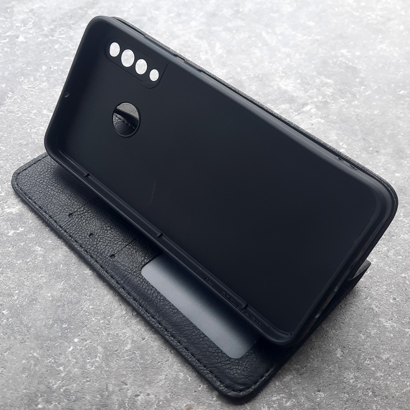 В чехле-книжке есть встроенный слоты под банковские карты, проездной или визитку.